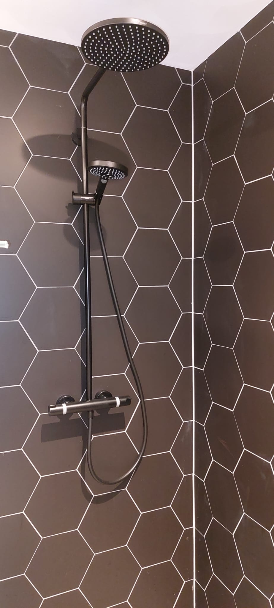 Professionele douche installatie voor een strak afgewerkte badkamer, met oog voor comfort, duurzaamheid en stijl.